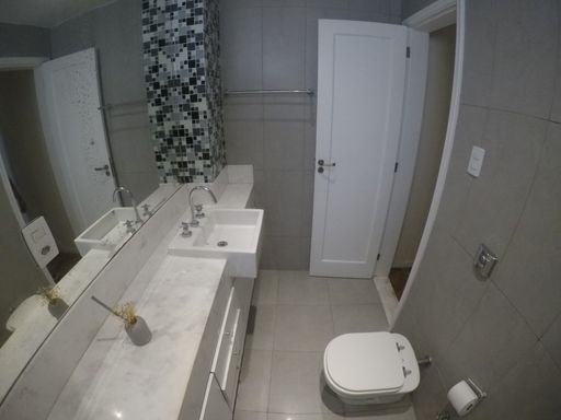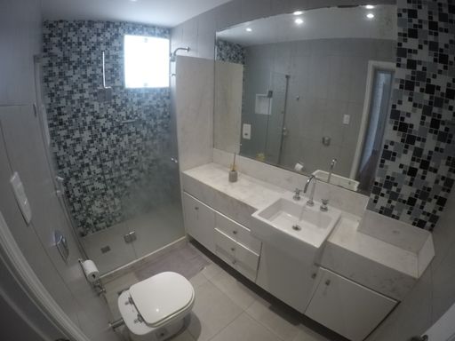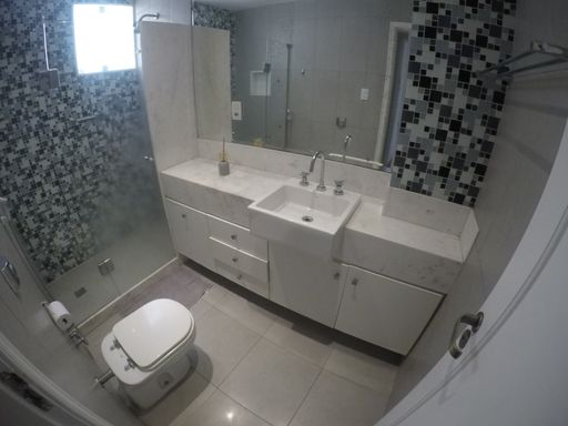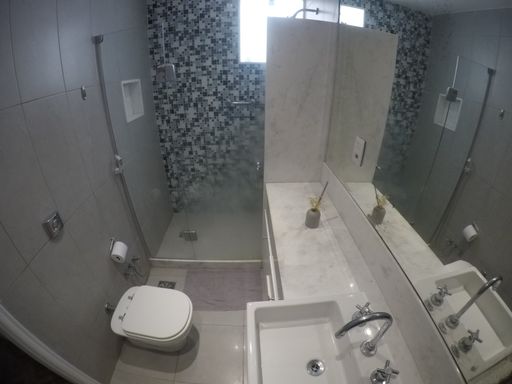 Banheiro social com box blindex e armários