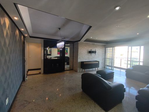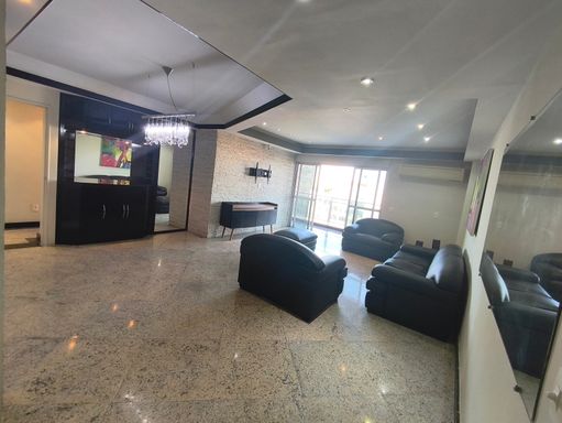Apartamento com 128m2, em andar alto, muito bem localizado, com excelente acabamento e piso todo em granito. O imóvel é constituído por 03 quartos, sendo uma suíte com closet e banheira, sala ampla com varandão, os outros 02 quartos com armários planejados e com acesso ao varandão, lavabo, banheiro social amplo, roupeiro no hall de circulação íntimo, cozinha com copa e repleta de armários + despensa. Área de lavanderia ampla e dependência de serviço (quarto e banheiro). São 2 vagas de garagem.